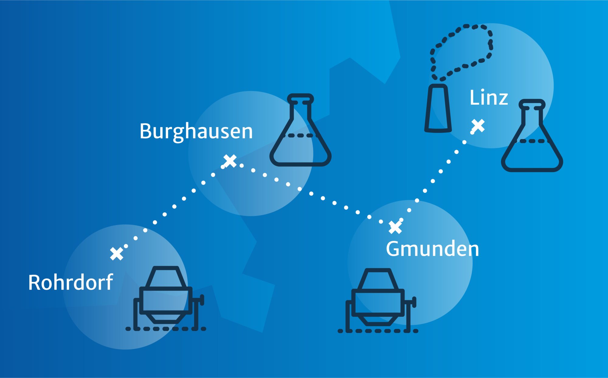 Gemeinsam mit unserem Kooperationspartner Rohrdorfer führen wir eine Machbarkeitsstudie für ein CO2-Startnetz durch. Dieses Netz soll das Zementwerk am Standort Rohrdorf mit potenziellen CO2-Nutzern im bayerischen Chemiedreieck Burghausen verbinden. Eine Anbindung des Zementwerks Gmunden und der Industrie- und Chemieregion Linz in Oberösterreich ermöglicht zudem den Anschluss weiterer potenzieller CO2-Quellen, Nutzungsorte und Zwischenspeicher.